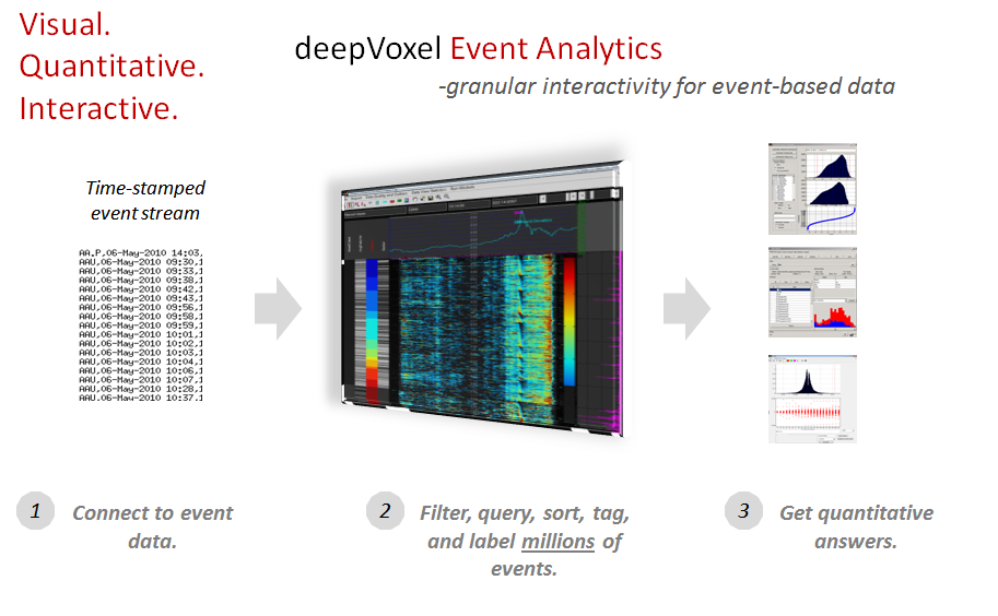 deepVoxel EventAnalytics is interactive software for time-series and event-based data. It helps analysts arrive at deeper insight by connecting analysts to granular views of data.
